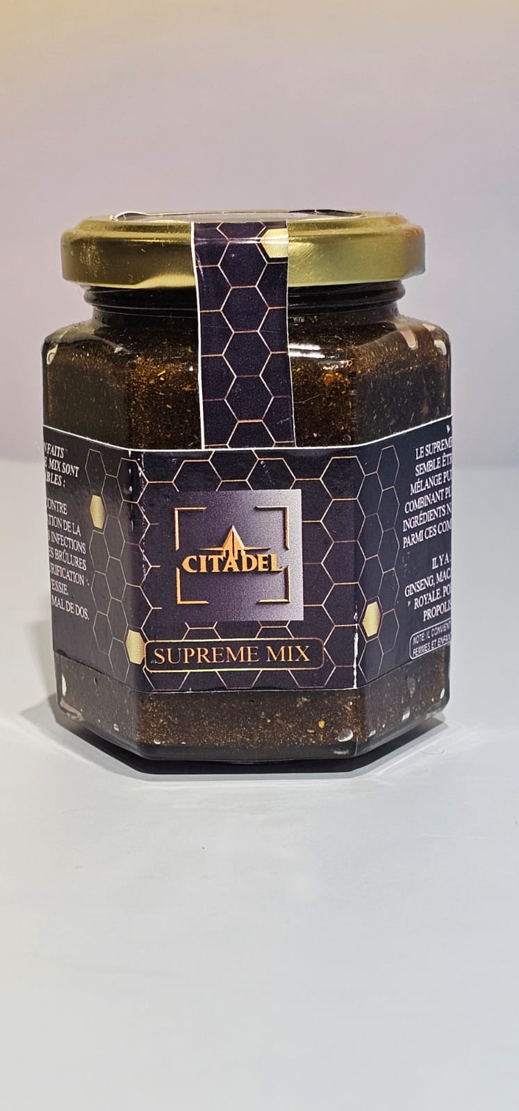 SUPREME MIX est un mélange puissant miel de jujubier du YEMEN, ginseng, maca, gelée royale, pollen et propolis qui offre de nombreux bienfaits pour la santé. Ces ingrédients naturels sont reconnus pour leurs propriétés bénéfiques pour l'énergie, l'immunité et la vitalité globale. Essayez-le maintenant et découvrez ses effets puissants.